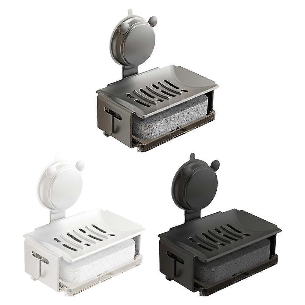 Modern Soap Holder for Shower No Drill Adhesive Mount Rustproof 2-Tier Drainage Tray for Bathroom Kitchen Countertop Organizer