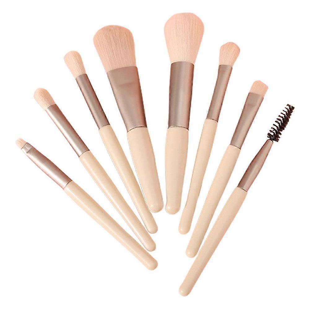 Portable 8 Mini Makeup Brush Set Travel Friendly Synthetic Bristles Wooden Handle 8 Piece Set for Beginners Professionals Ideal Gift