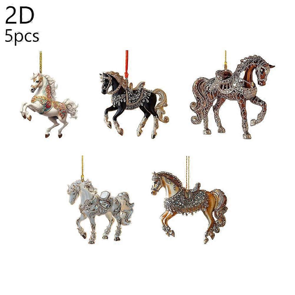 Horse Acrylic Hanging Ornaments 5-Pack Modern Home Decor for Christmas Tree Gift