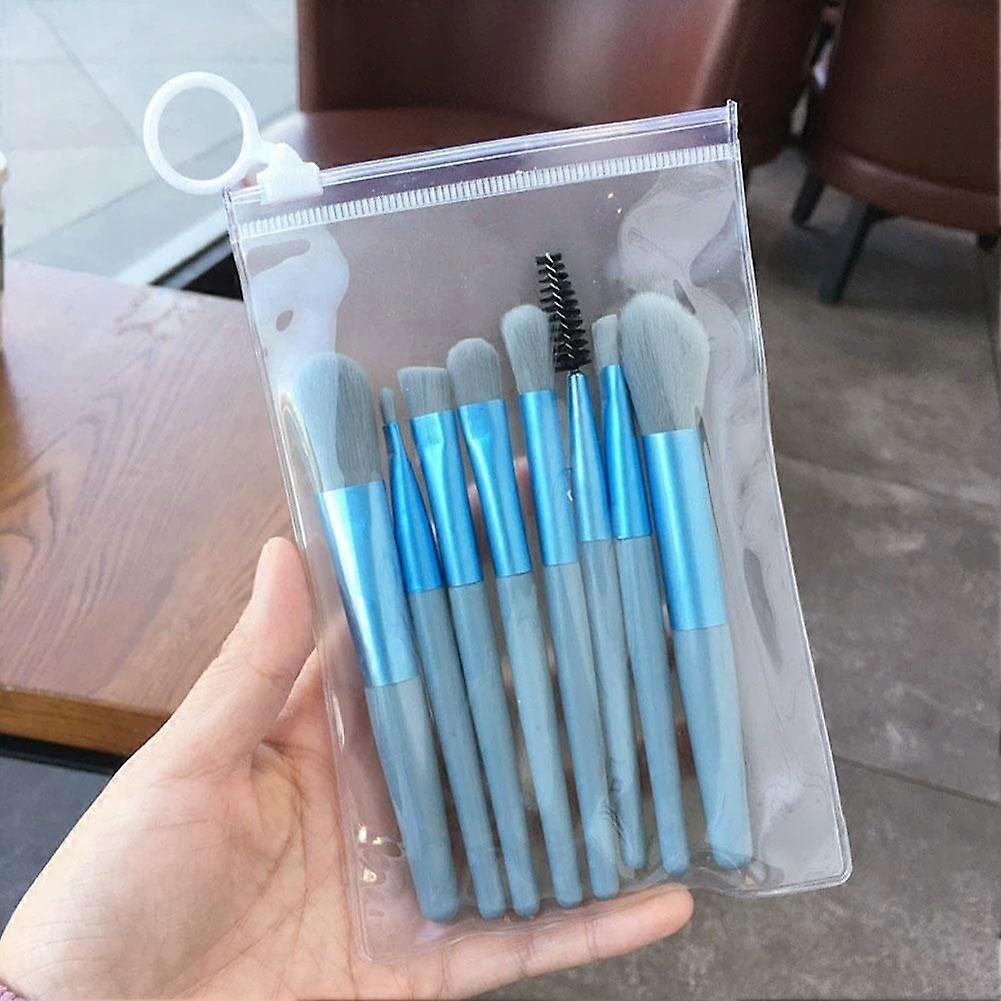 Portable 8 Mini Makeup Brush Set Soft Synthetic Wool For Daily Use Easy To Clean Travel Friendly Blue Pink Beige Green