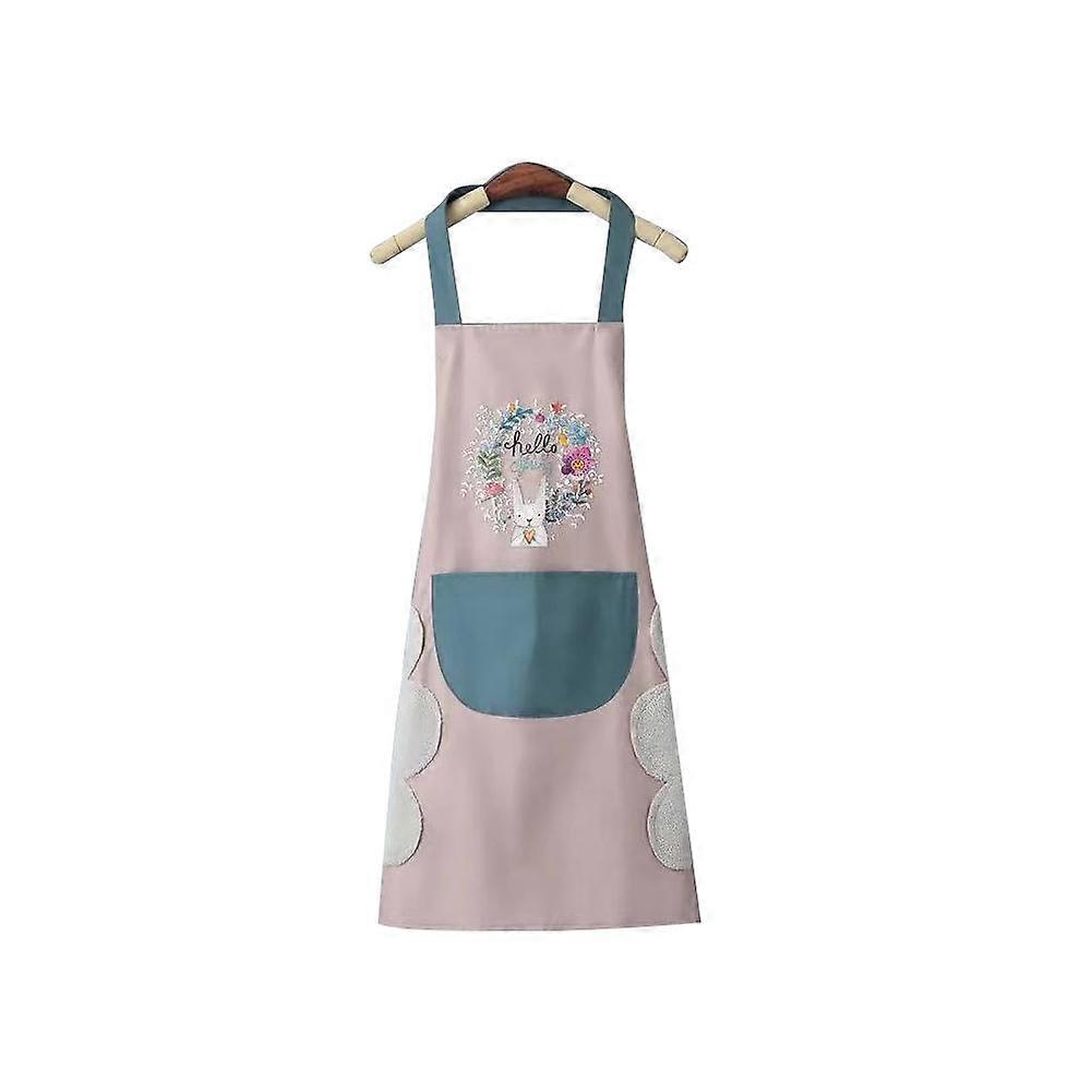 Waterproof PVC Kitchen Apron with Wipeable Surface Adjustable Strap Large Pocket for Cooking Cleaning Salon Multi Use Blue Pink