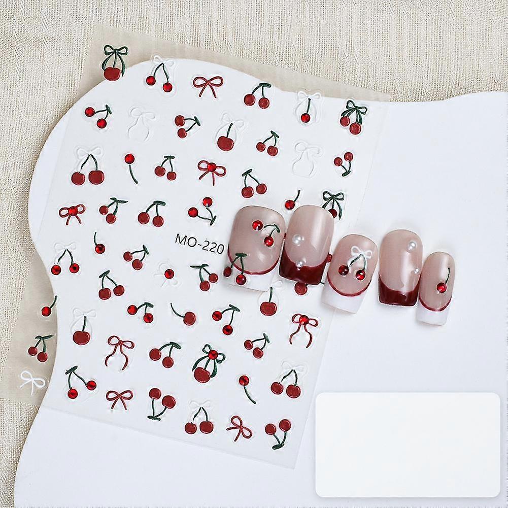 Cherry Nail Art Stickers Easy Apply Long Lasting Waterproof Nail Decals Cute Fashionable Manicure Designs Safe For All Nail Types