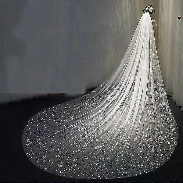 Sparkling Bling Bling Wedding Veil Wedding Veils Long Cathedral Length Sequenced Beads Bridal Veil With Free Comb Ivory