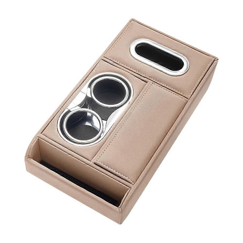 Car Armrest Storage Box with Cup Holder PU Leather Waterproof Organizer for Tissues Phones Easy Installation
