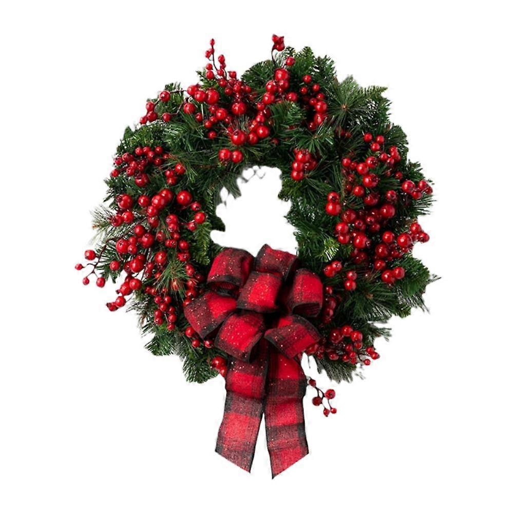 Christmas Bow Wreath with Berry Vine Red Black Checkered Holiday Door Hanger Durable Fade-Resistant for Indoor Outdoor Decor