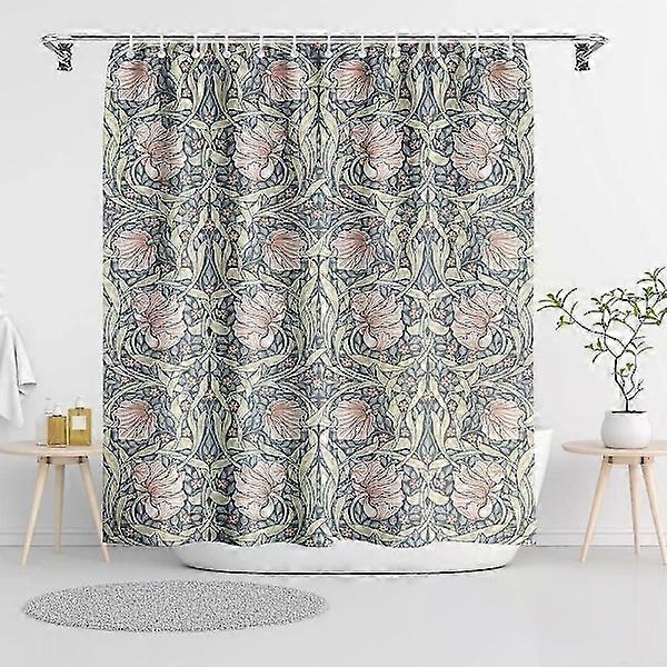 William Morris Vintage Floral Shower Curtain, Botanical Blue/Pink Shower Curtain Sets for Bathroom with 12 Hooks, Elegant Chic Decorative Curt Photo