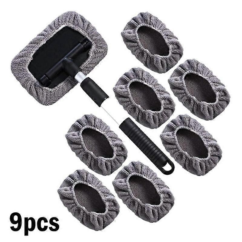 180-Degree Rotating Car Glass Cleaner with 8 Washable Microfiber Pads Retractable Handle for Auto Home Windows