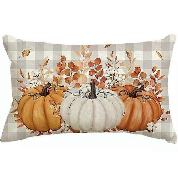 Checkered Orange Autumn Pillowcase, 30x50 cm Seasonal Autumn Thanksgiving