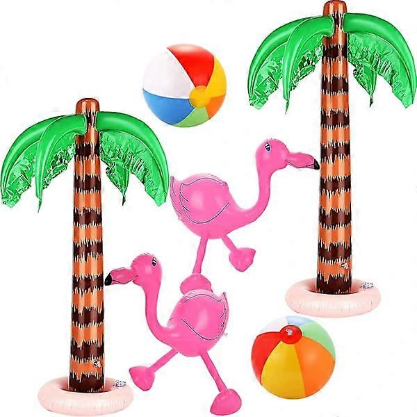 6 pieces of inflatable palm trees, giant coconut palms, pink flamingos, colorful beach balls, rainbow colors