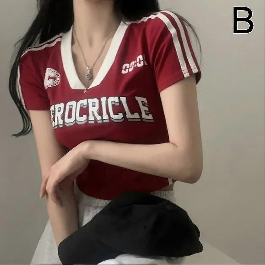 For Blokecore Jersey Retro Letter Print Tops Soft Breathable Polyester Fashion Tight Fit Tee S-XL Black Red