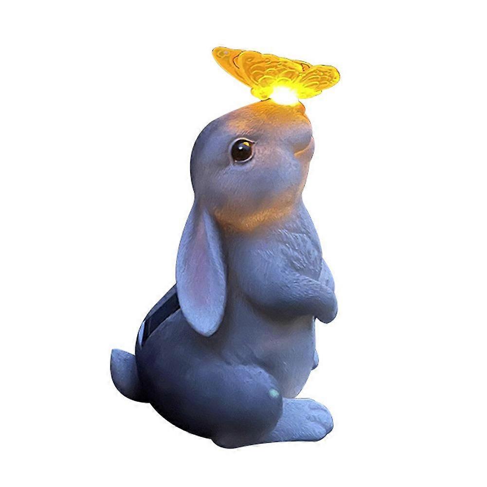 Solar Garden Decor Rabbit Statue Automatic Solar Powered Light Waterproof Hand Painted Resin Art Gift for Outdoor Garden