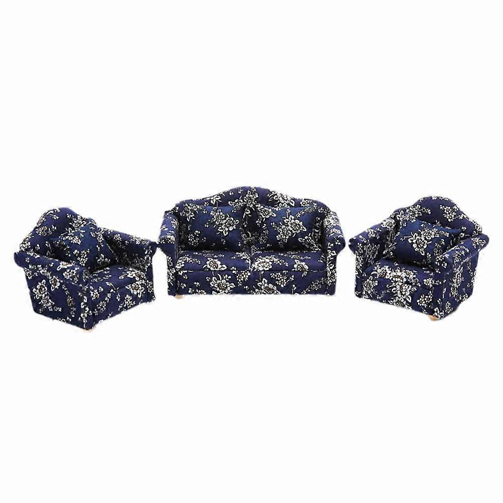 1:12 Miniature Striped Sofa Set Realistic Dollhouse Furniture with Pillows for Tiny House Decor