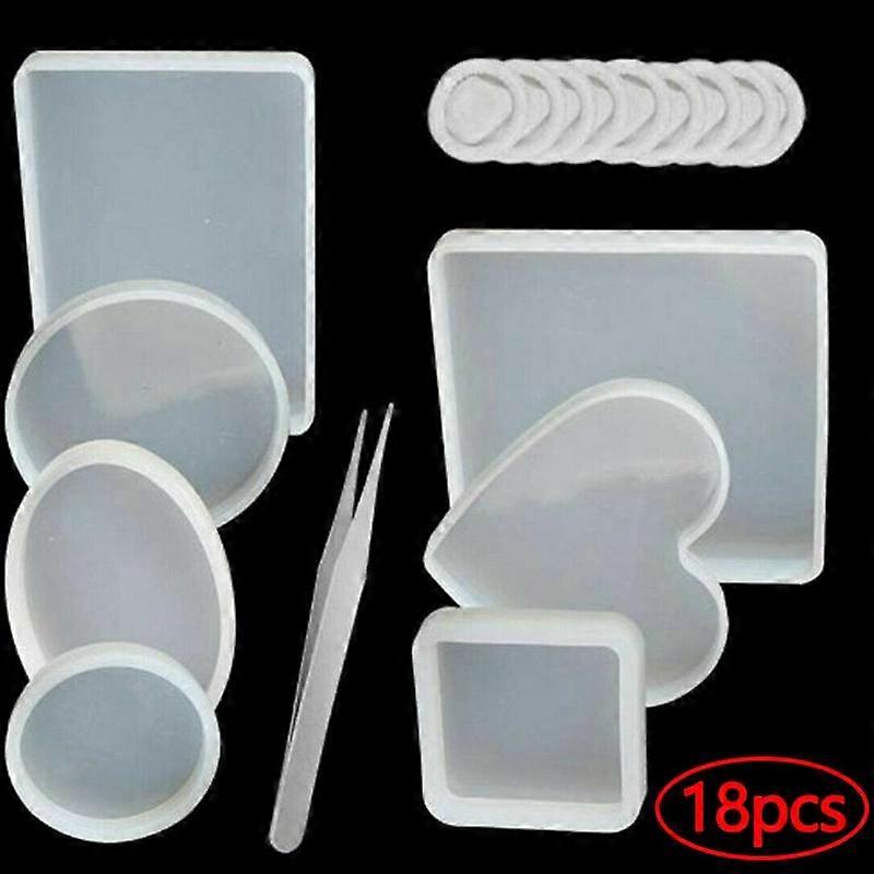 Silicone Coaster Resin Molds Set 7PCS With Tweezers Finger Sleeves Flexible Reusable Easy Clean Craft Casting