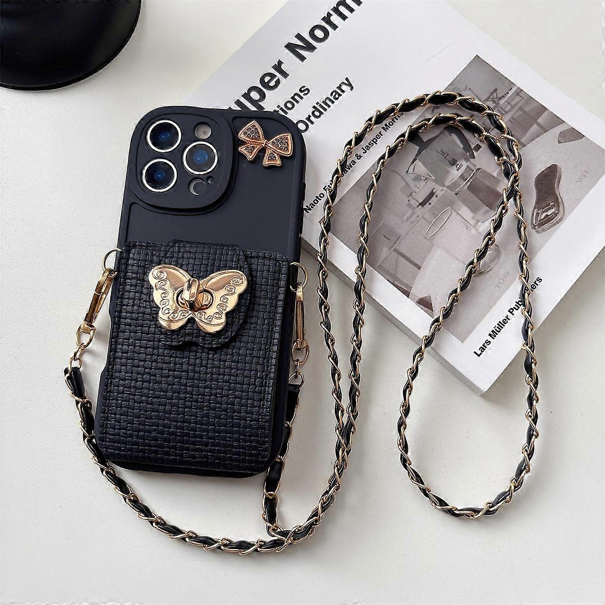 Cartoon Butterfly Crossbody Wallet Card Bag Phone Case for IPhone 16E 17 Air 16 Plus 15 14 13 12 11 Pro Max XS Protective Cover