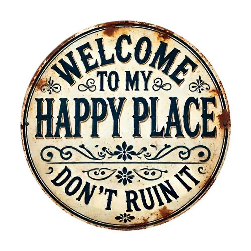 For Happy Place Wood Sign Welcome Wall Decor Round Metal Sign For Home Gift Housewarming