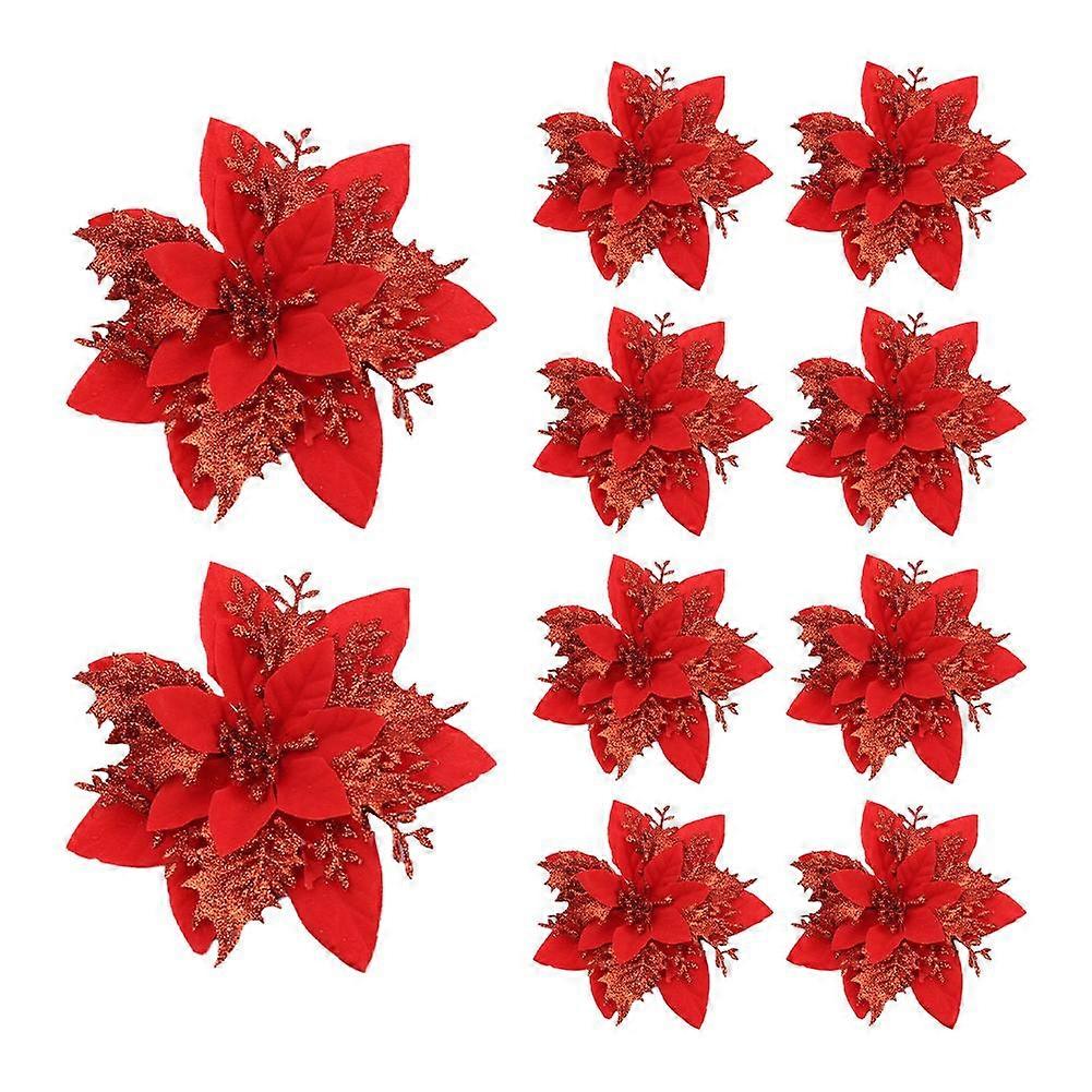 Christmas Ornament Flower Set for Tree Decorations Glittering Desktop Floral Accents