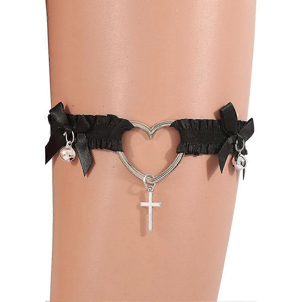 Bow Love Bell Leg Chain Lace Minimalist Adjustable 33-60cm Metal Polyester Anklet For Women Black White