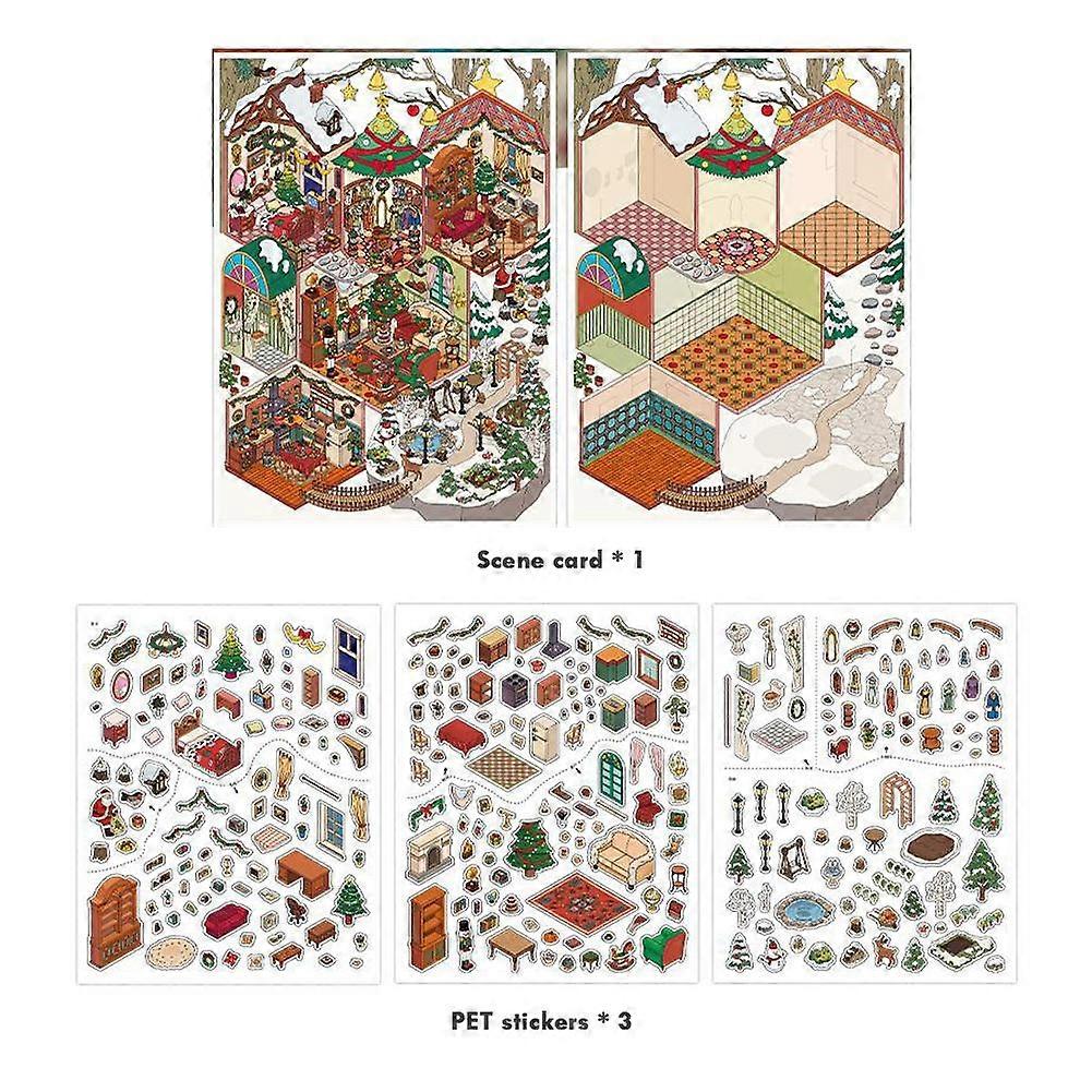2.5D Large Christmas Scenery Stickers 3Pcs Set with Scene Card Premium Glossy PET Material for DIY Holiday Crafts Journals Gifts