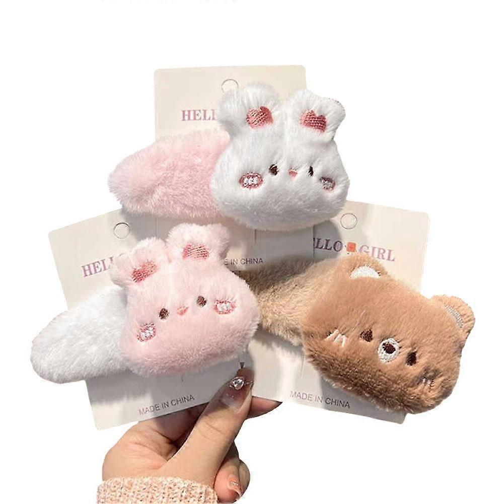 Fluffy Bear Bobby Pins Non-Slip Silicone Grip Kawaii Animal Hair Clips For Girls Women Sweet Style Hair Accessories 1PC or 3PC Set