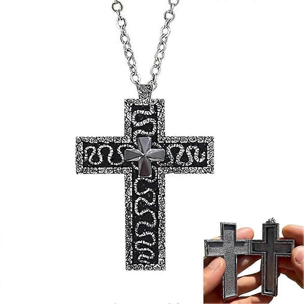 Material: Alloy Size: Necklace circumference 50cm (19.69in) Color: As shown in the picture 1. Retro creative double-layer cross design, integrated with snake bits, showing unique personality and mysterious charm. 2. Openable structure design, built-in small space for storing commemorative items, giving the necklace emotional value and commemorative significance. 3. Made of high-quality metal material, wear-resistant and anti-oxidation, comfortable to wear, suitable for daily matching and holiday wear. 4. Fashionable and versatile style, suitable for Christmas, Valentine's Day, birthdays and other holiday occasions, is a good choice for gifts. 5. Exquisite pendant design, clear details engraving, good light refraction effect, enhance the overall texture and high-end feel. Notes: 1. As we all know, different computers display different colors, and the actual color may be slightly different from the picture below. 2. Due to manual measurement, the size may have a few centimeters error 3. Do not wear this product when taking a bath or sleeping, so as not to stretch and deform, or even break, and avoid squeezing, so as not to make the product loose and fall off. Avoid contact with air when not wearing, and keep it sealed Package includes: 1pcs necklace