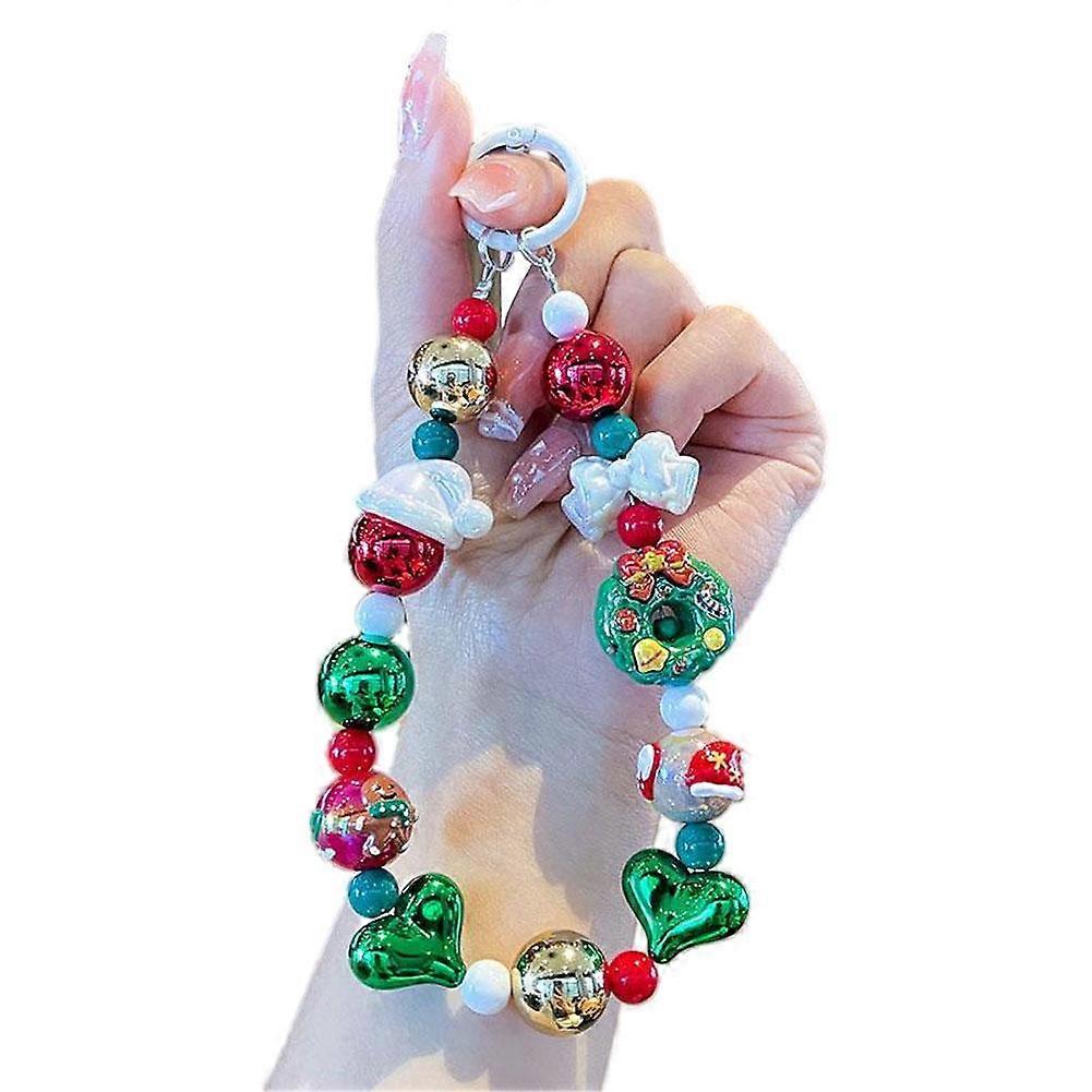 Festive Christmas Phone Pendant Keychain Cartoon Santa Claus Beaded Lanyard Resin Decoration Prop Gift