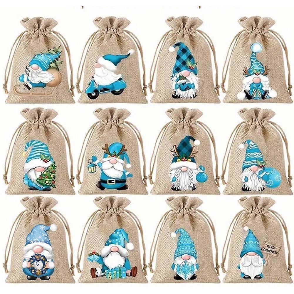For Christmas Candy Bags 12 Pack Reusable Holiday Gift Bags with Beautiful Patterns for Parties Presents and Festive Home Decor