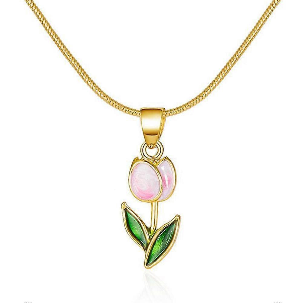Tulip Flower Necklace Dainty Alloy Jewelry Unique Floral Pendant Gift For Women For Mom For Valentine