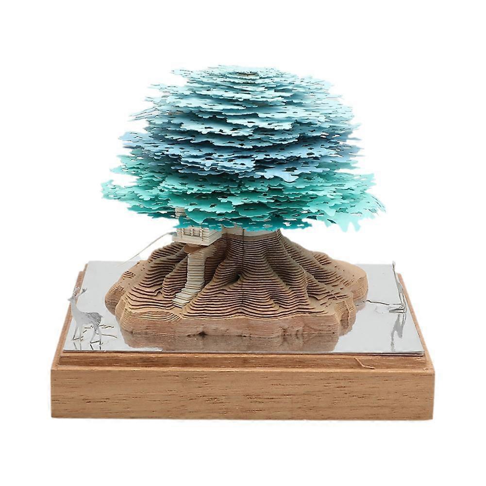 3D Tree House LED Notepad Acrylic Display Case Eco-Friendly Paper Sculpture Art Gift with Light for Home Office Desk Decor