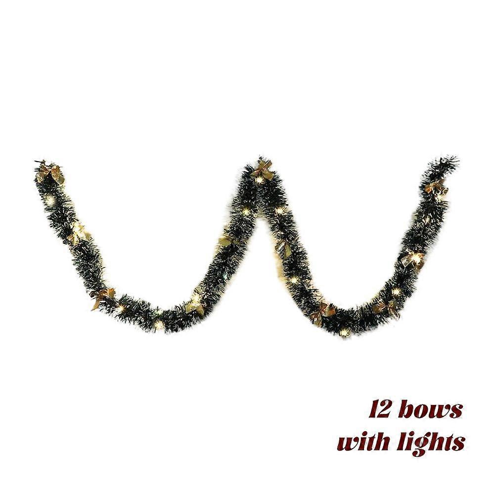 For Christmas LED Ribbon 2M Pre Lit Decorative Bow with Warm White Lights for Tree Wall Door Staircase Holiday Decor