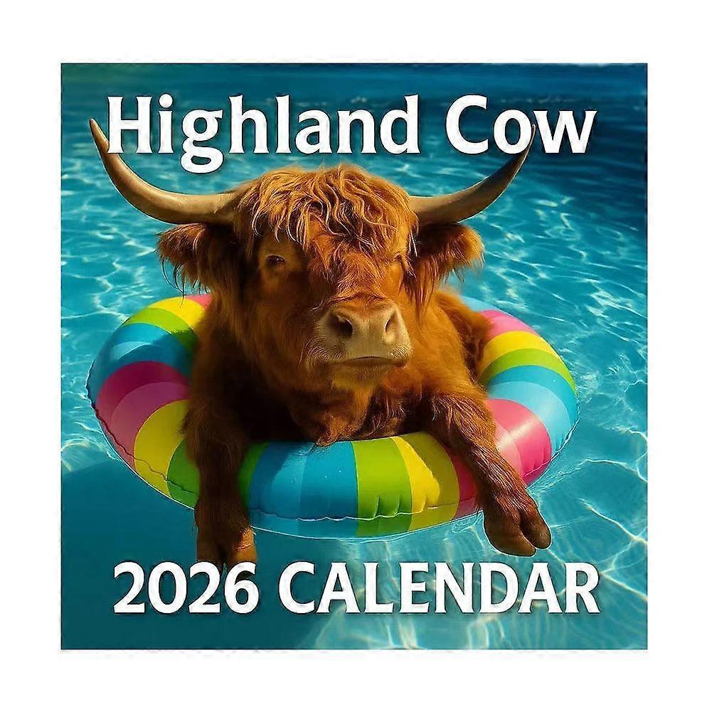 2026 Highland Cow Wall Calendar Large High Definition Art Tear Resistant Paper Metal Ring for Easy Installation Perfect Holiday Gift