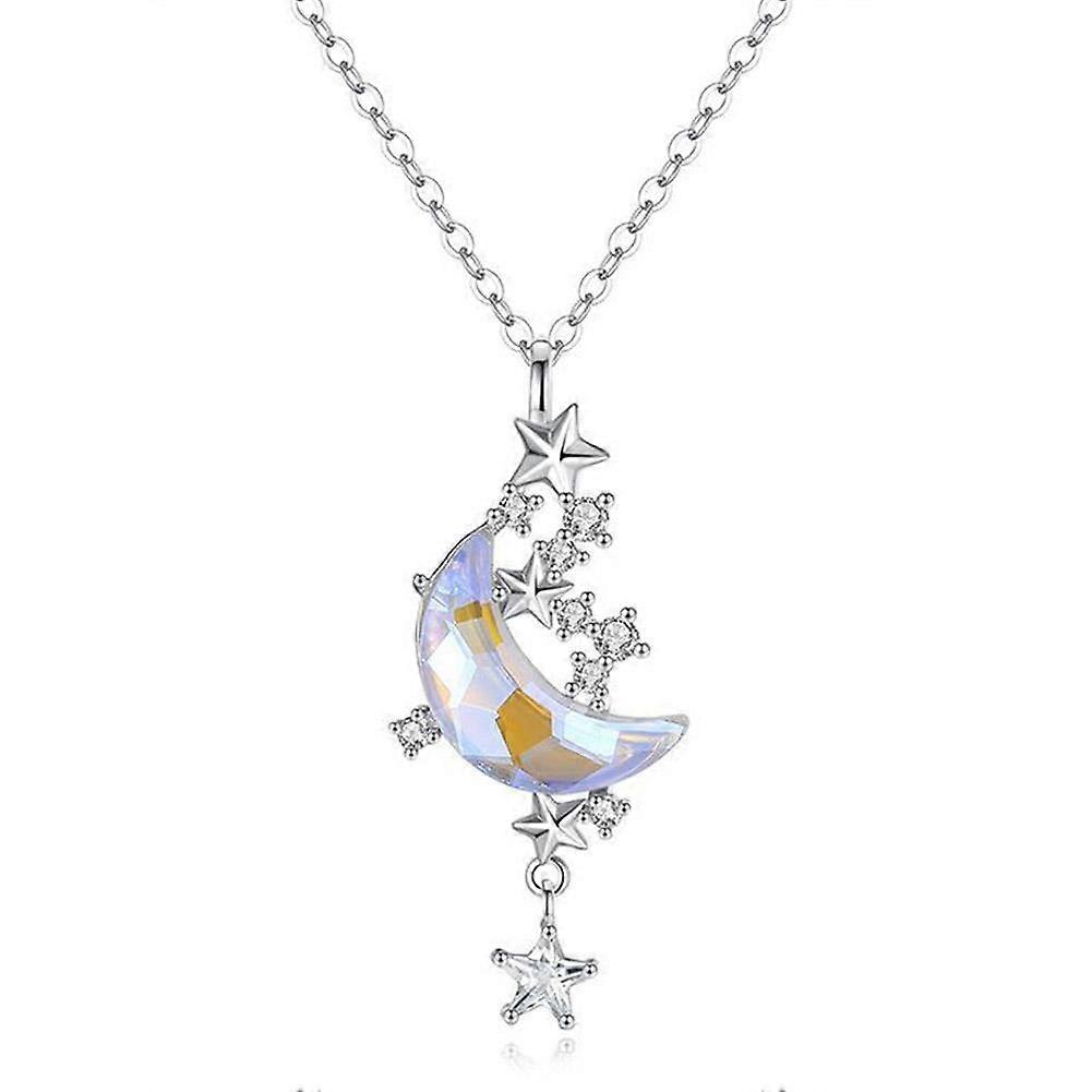 Moon Star Necklace Silver Alloy Jewelry Elegant Celestial Pendant For Holiday Party Gift