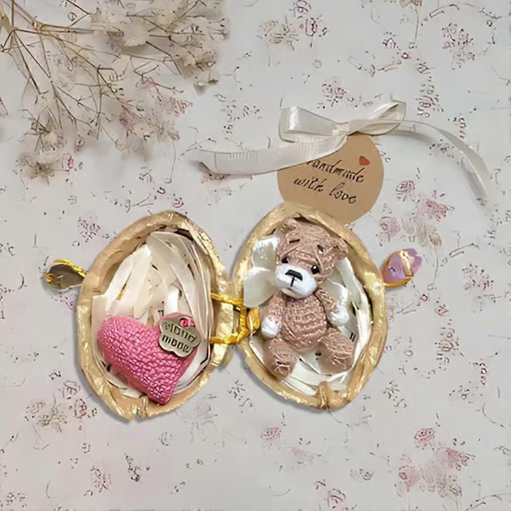 Walnut Shell Crochet Animal Handmade Mini Rabbit Bear In Heart Home Desk Decoration Unique Warm Gift For Women Friends Emotional Support