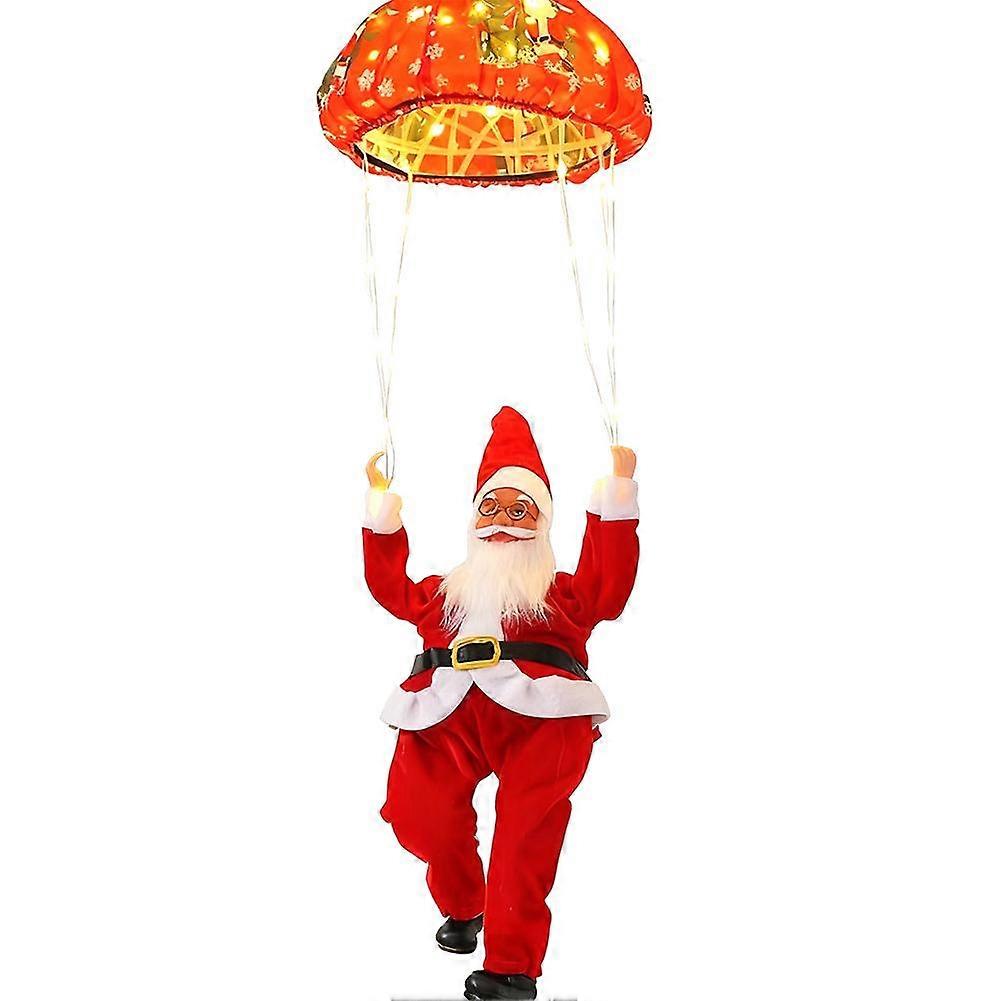 Solar Powered Santa Skydiver LED Lighted Hanging Decoration For Indoor Outdoor Christmas Holiday Decor
