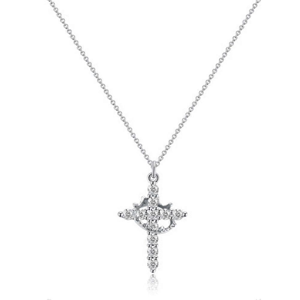 Rotating Crown Cross Necklace Unique Spinning Pendant Regal Elegant Alloy Jewelry For Women Gift