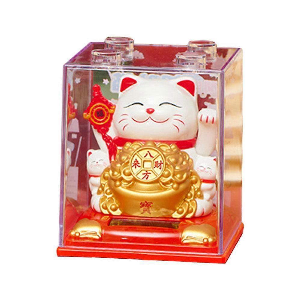 Solar Fortune Cat Automatic Hand Waving Ornament Solar Powered Lucky Charm Decoration for Home Office Desk