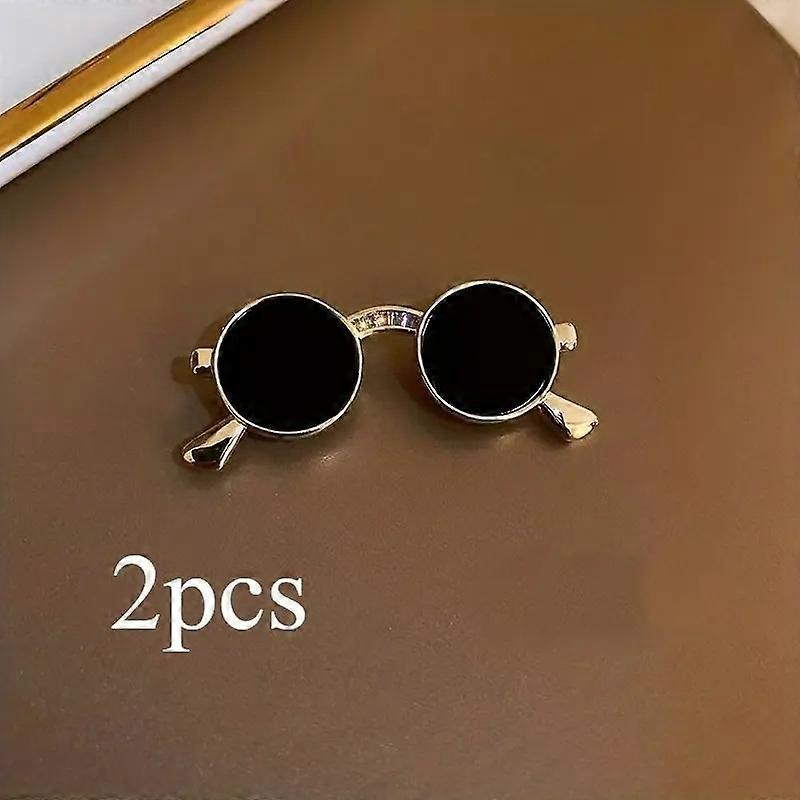 2pcs Elegant Sunglasses Shape Brooch Jewelry for Women Vintage Style Clothings Decoration