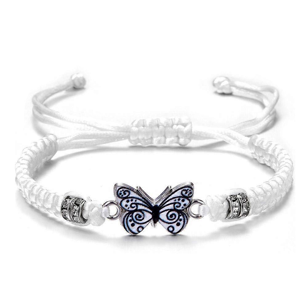 Butterfly Flower Bracelet Adjustable Wax Rope Alloy Charm Jewelry Sparkling Floral Design For Women Girls Gift