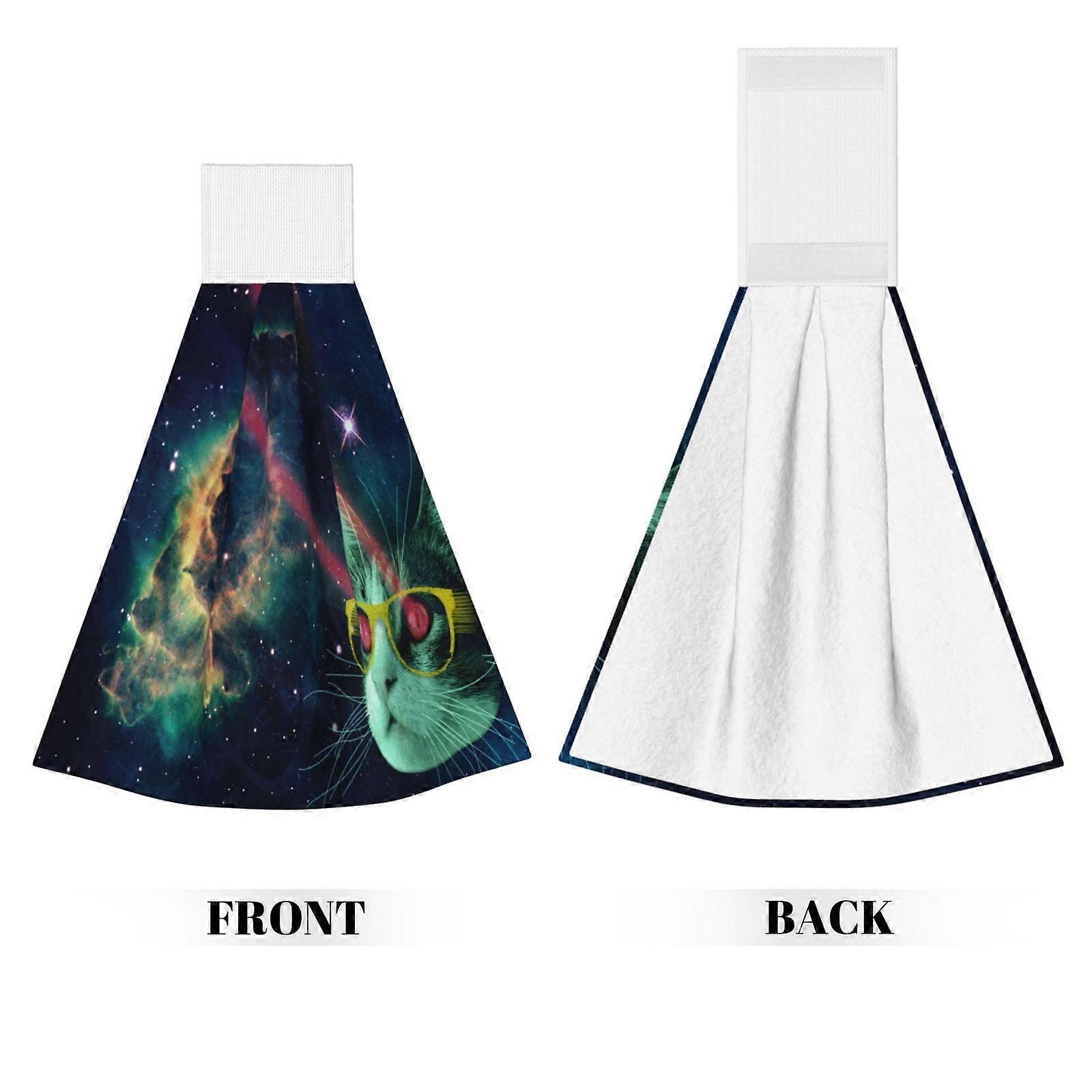 Galaxy Cat Cat In Space Hand Towels With Velcro Loop, Coral Velvet Hand Wipes For Kitchen & Bathroom