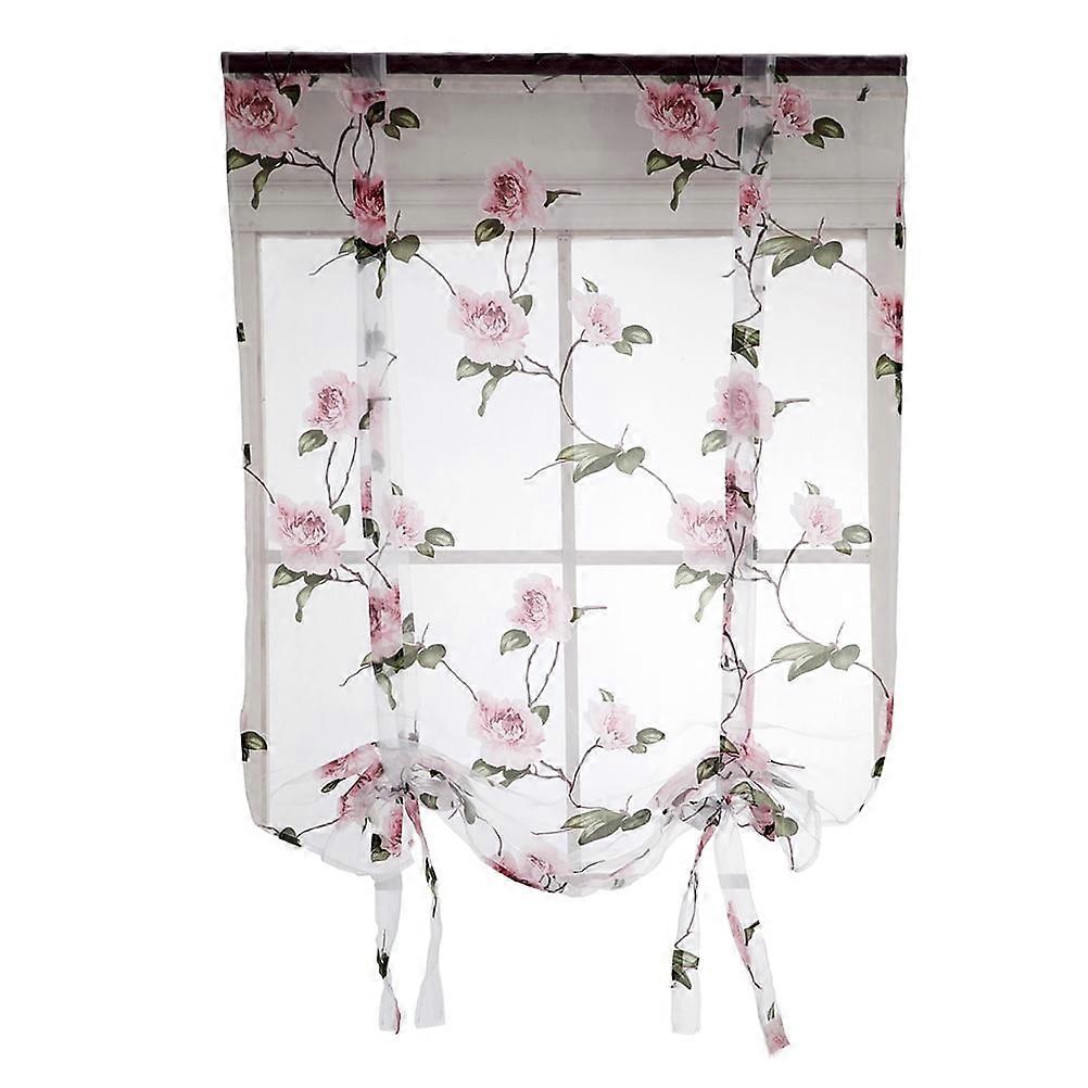 Floral Roman Curtain Sheer Blackout Tie Up Ribbon Window Drapes (Pink)
