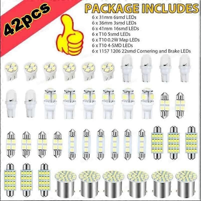42Pcs Car Lights T10 6000K SMD LED Replacement License Plate/Reading Xenon White Interior Light Bulbs