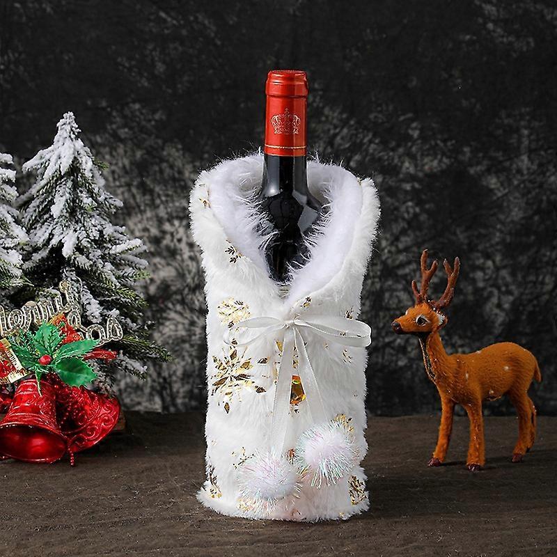 Christmas decorations: wine bottle cover, gold and silver snowflake plush collar, red wine cover, table setting props