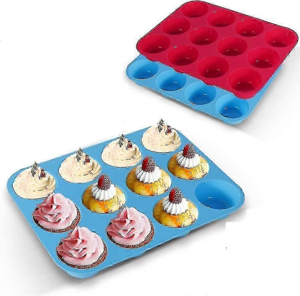 Silicone Muffins Tray, 2 Pack Muffin 12 Cup Large, Non-stick Cupcake Tin