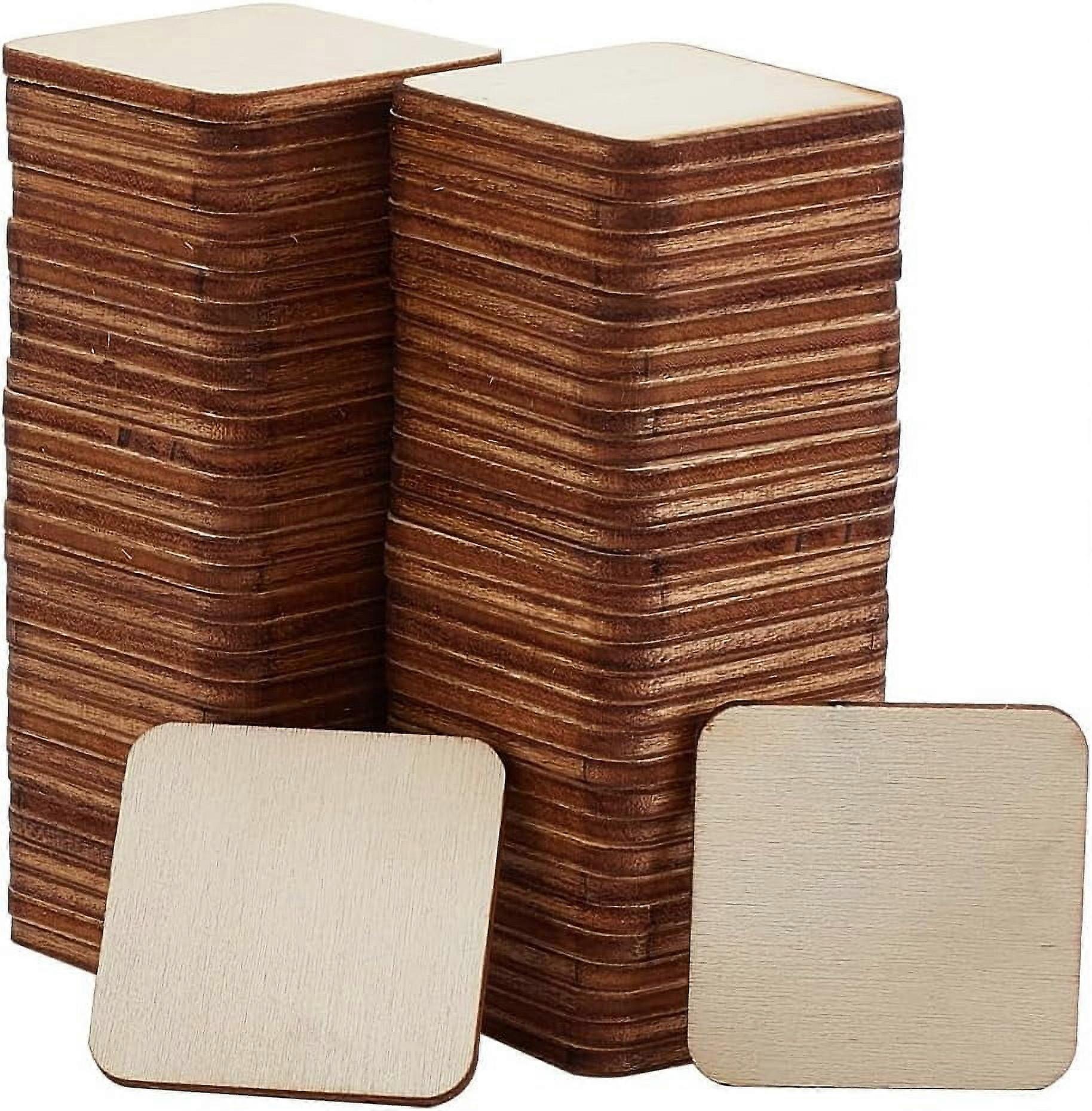 200pcs 1.2" Unfinished Wood Squares, Natural Blank Cutouts for Crafts, Painting, Carving, Ornaments, Home Decor & Project Supplies