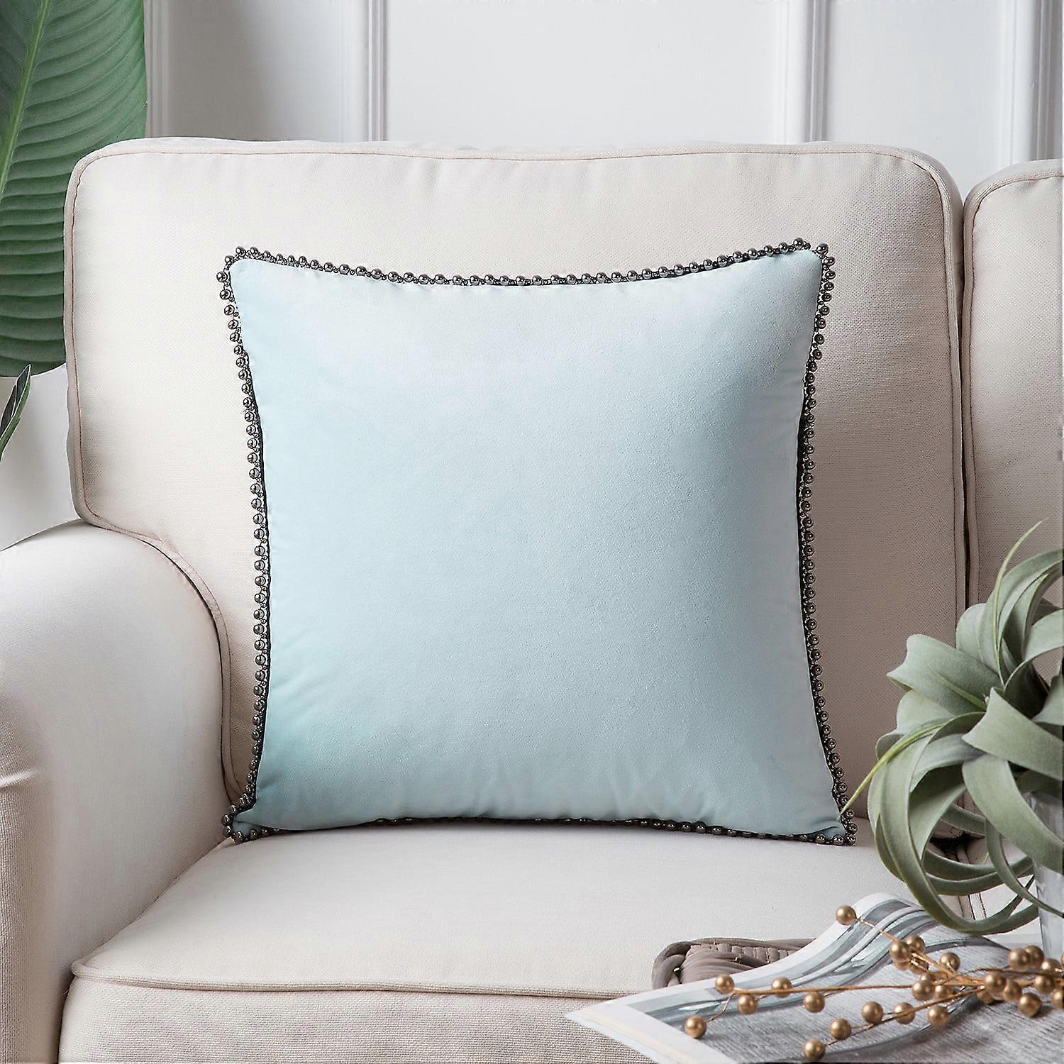 Phantoscope Particles Trimmed Soft Velvet Throw Pillow, 18" x 18", Light Blue with Silver Particles, 1 Pack