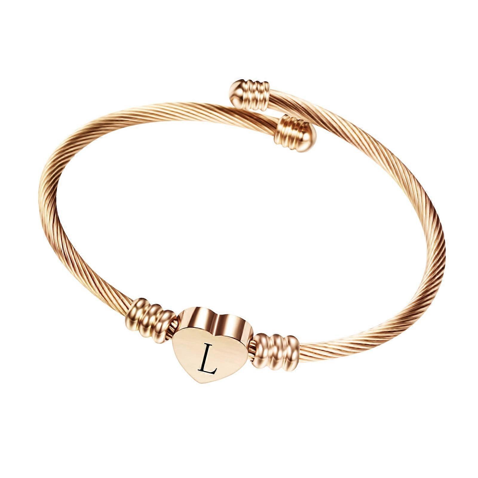 YUEHAO Bracelets Heart Initials Bracelet-A-Z Stainless Steel Engraved Charm Bracelet, Woman Girl Jewelry Birthday Festival Gift L