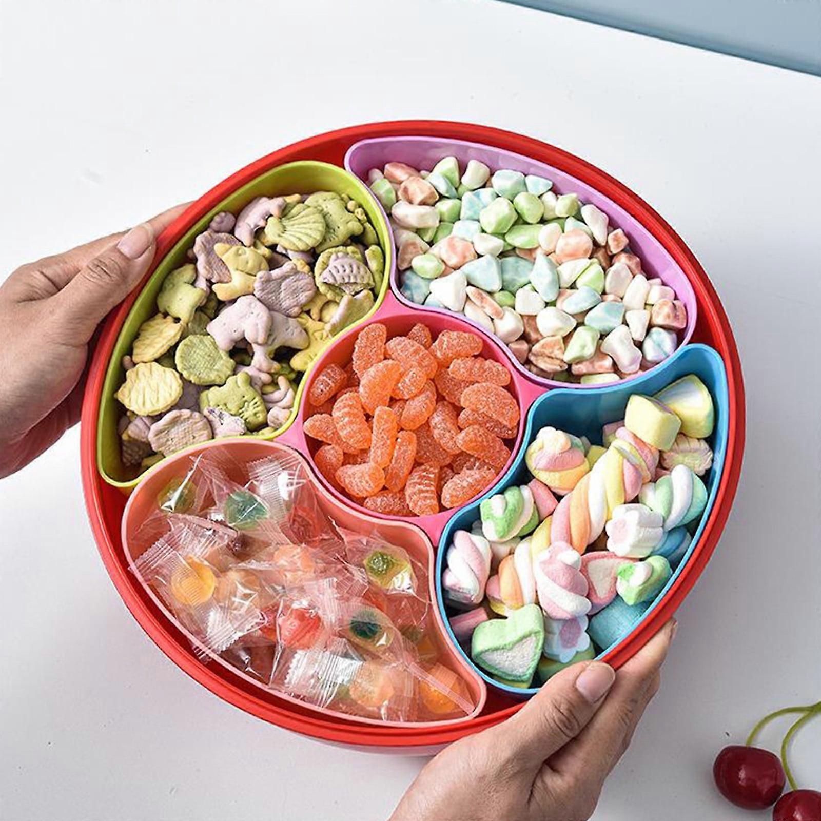 Flower-Shaped Divided Serving Tray with Lid, Plastic Snack, Fruit, Candy & Nut Bowl - Party Supply Organizer