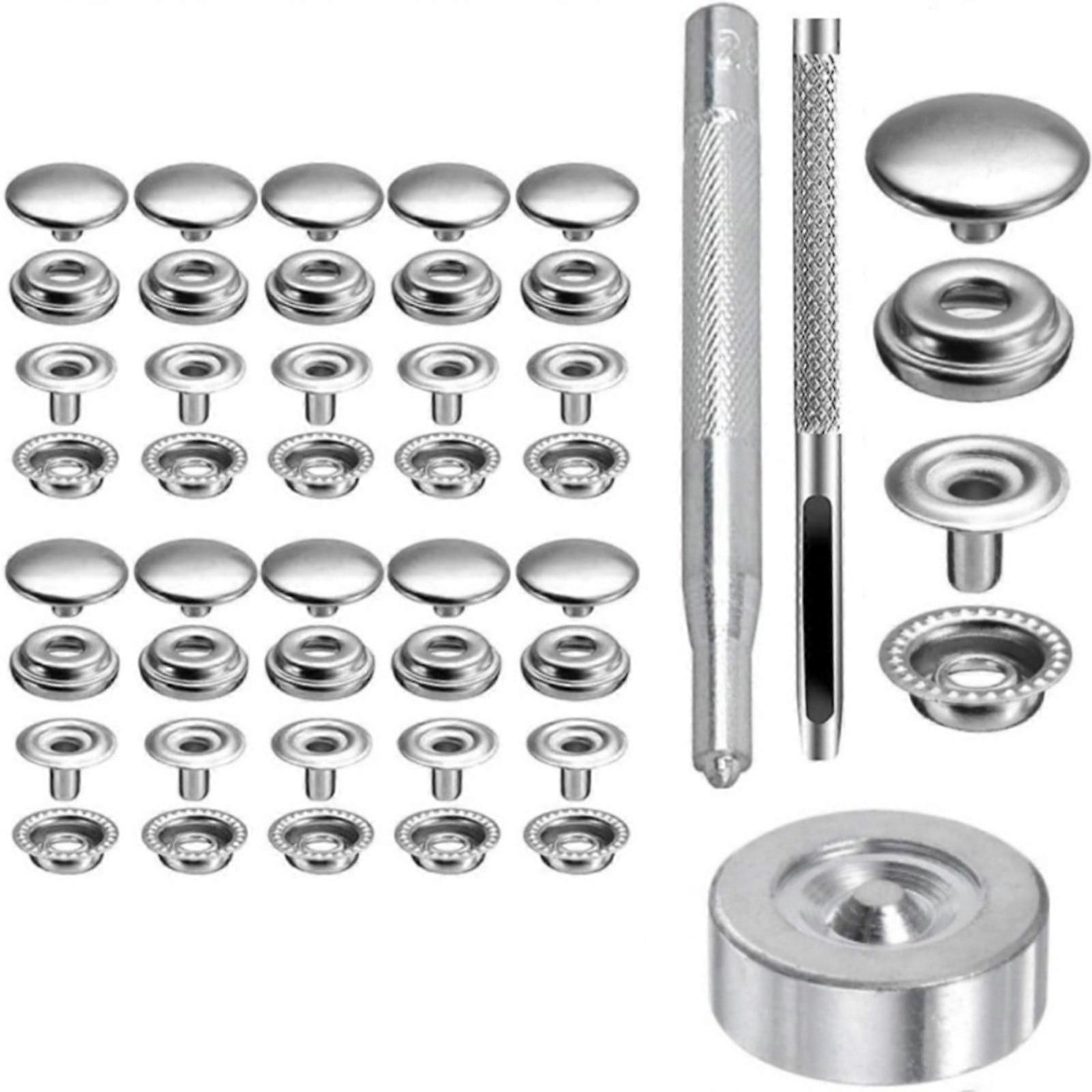 Button Holiday Gifts 10 Sets Snap Fasteners Kit, Metal Snaps Sew On, Heavy Duty Leather with Hole Punch & Tools