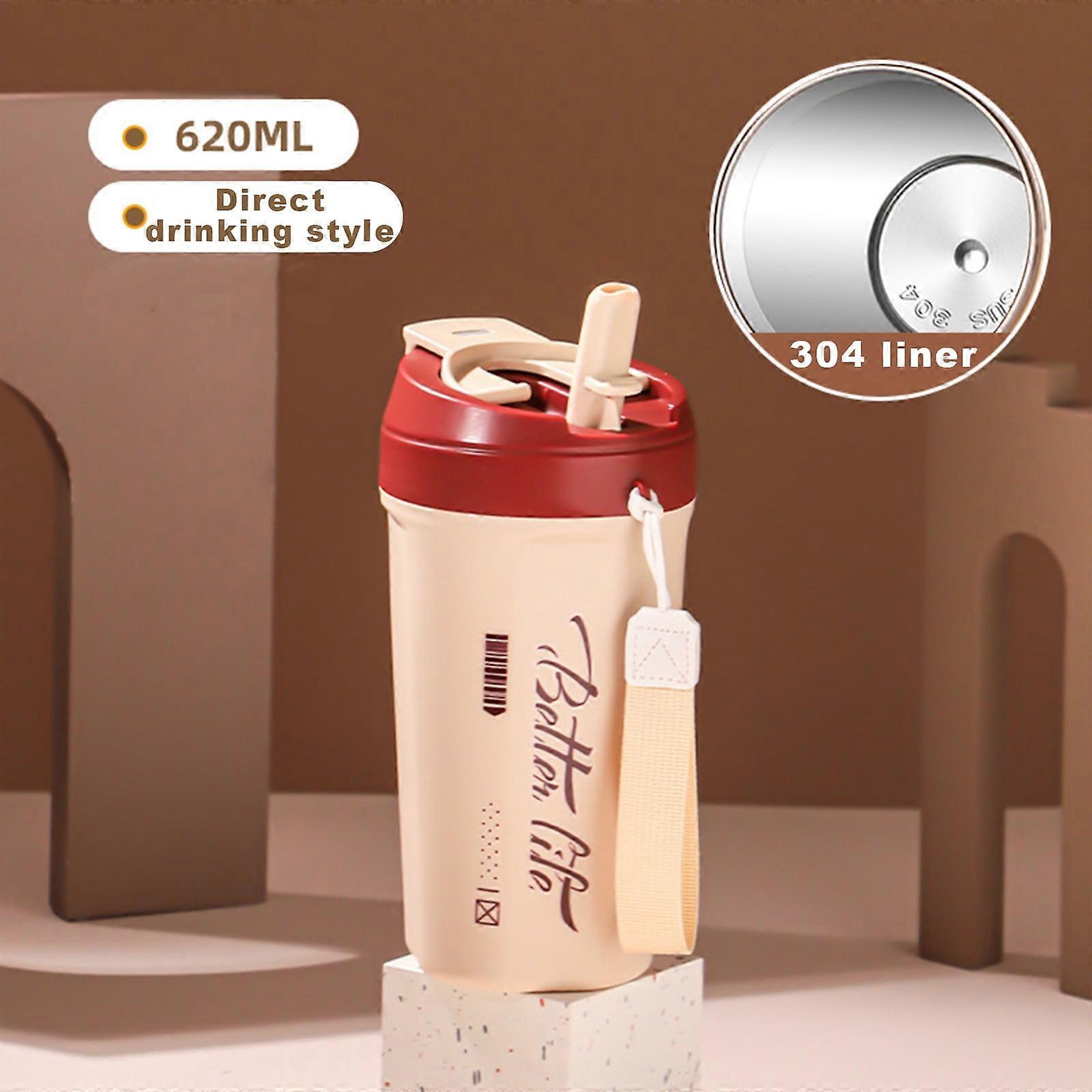 304 Stainless Steel Straw Water Cup With Carry Rope, Travel Mug Spill Proof with Lid - Coffee Cups for Keep Hot/Ice Coffee, Tea and Beer
