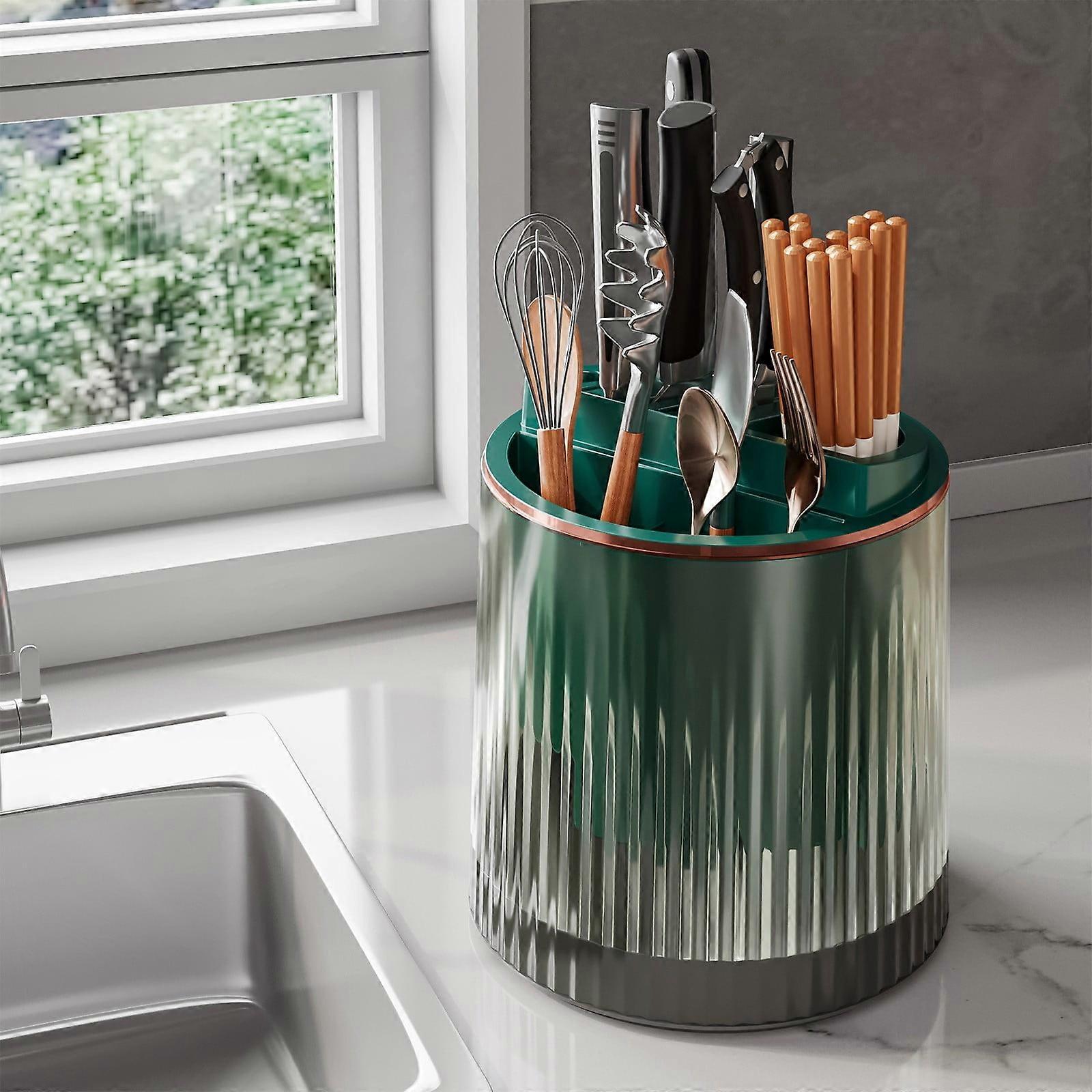 FloHua Christmas Gifts Clearance: Rotatable Knife & Chopstick Rack, Large Capacity Kitchen Shelf Organizer