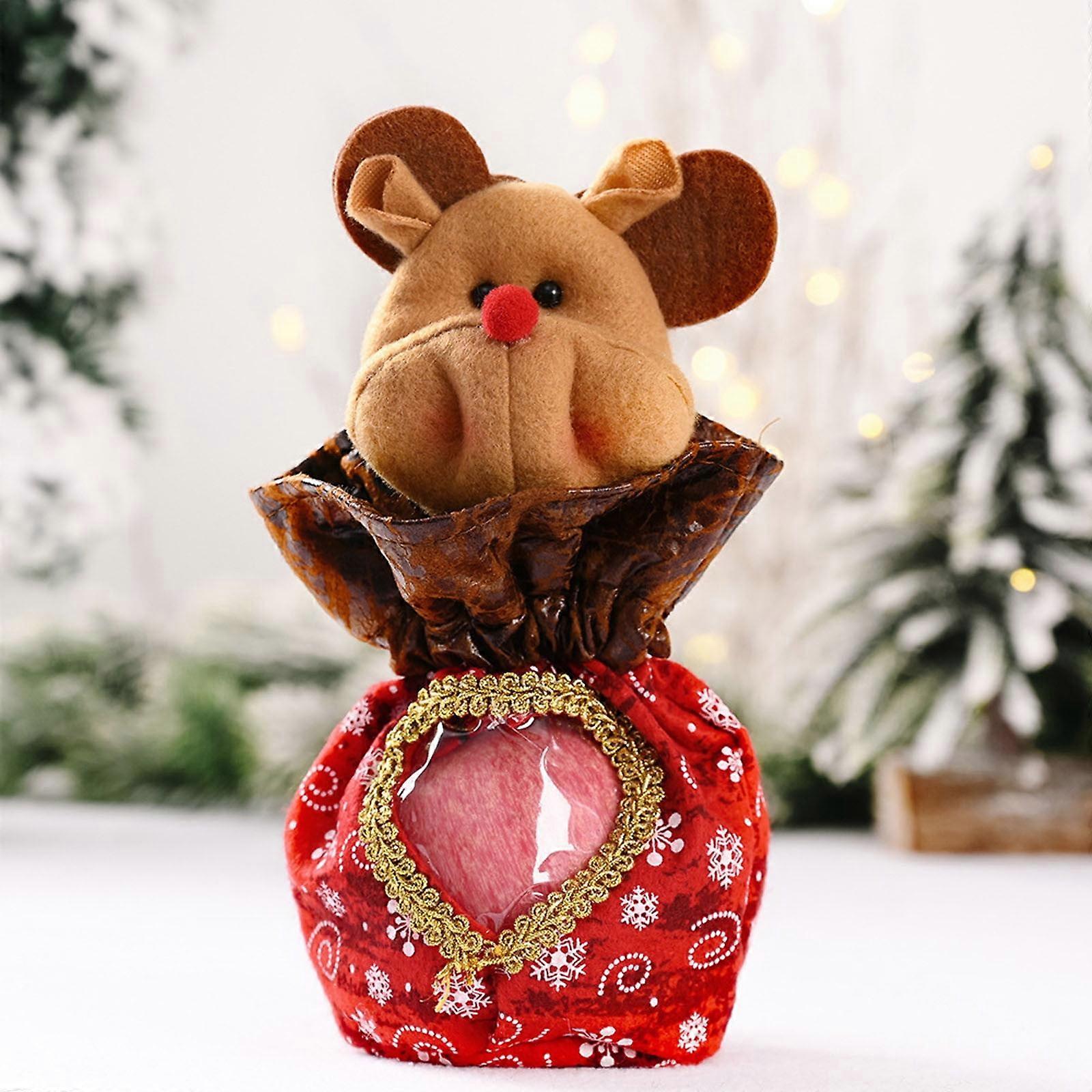 Christmas Candy Bag with Drawstring, 3D Xmas Gift Bags compatible with Apple, Santa Snowman Doll Storage Pouch, Wrapping Gift Bag